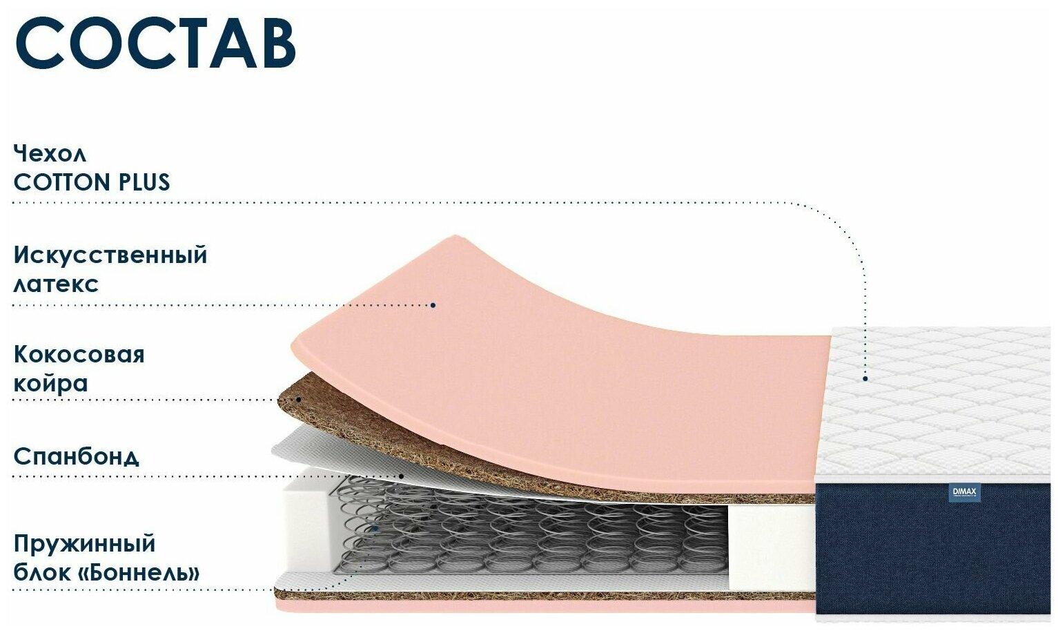 Матрас Dimax Практик Медиум Лайт Bonnel, 80x190 см, пружинный 10 660 ₽ Подробнее