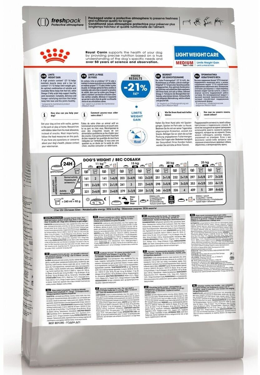 Корм для собак Сухой корм Royal Canin Medium Light Weight Care для взрослых собак средних размеров (весом от 10 до 25 кг), склонных к набору лишнего веса, от 1года до 10 лет, 3 кг