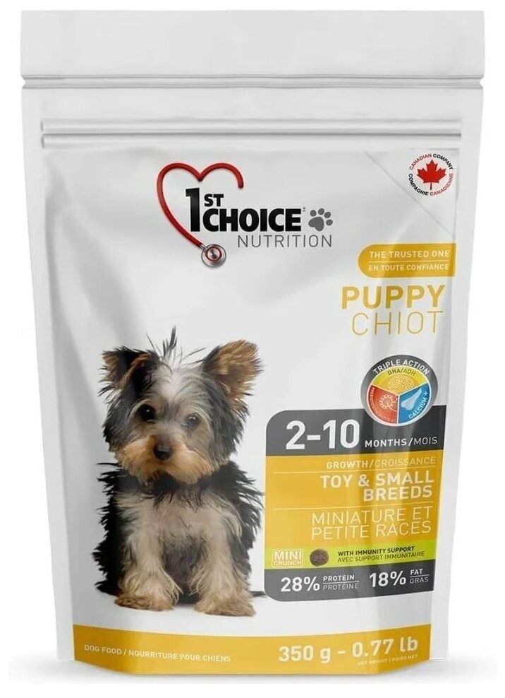 Лучшие цены. Сухой корм 1St Choice (Фест Чойс) Puppy toy & small - это повседневное питание для щенков миниатюрных и мелких пород, созданное на основе первоклассных рецептов под строгим контролем качества на заводе в Канаде. Состав данного корма полностью сбалансирован и содержит все необходимое для здоровья и правильного роста Вашего щенка. Данный корм содержит необходимые витамины, кальций и минералы, которые особенно нужны на первых этапах жизни Вашего питомца. Магазины в вашем городе.