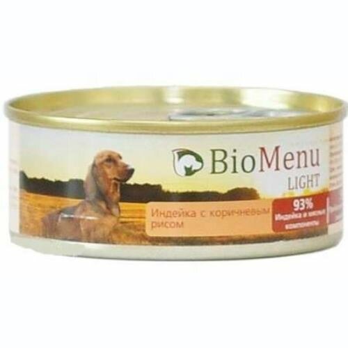 BioMenu Консервы для собак низкокалорийные с индейкой с коричневым рисом (LIGHT) (7415229814) | LIGHT 0,1 кг 19020 (10 шт)