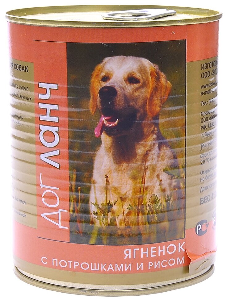 Dog Lunch Консервы для собак Ягненок с потрошками и рисом,410 г,2 шт
