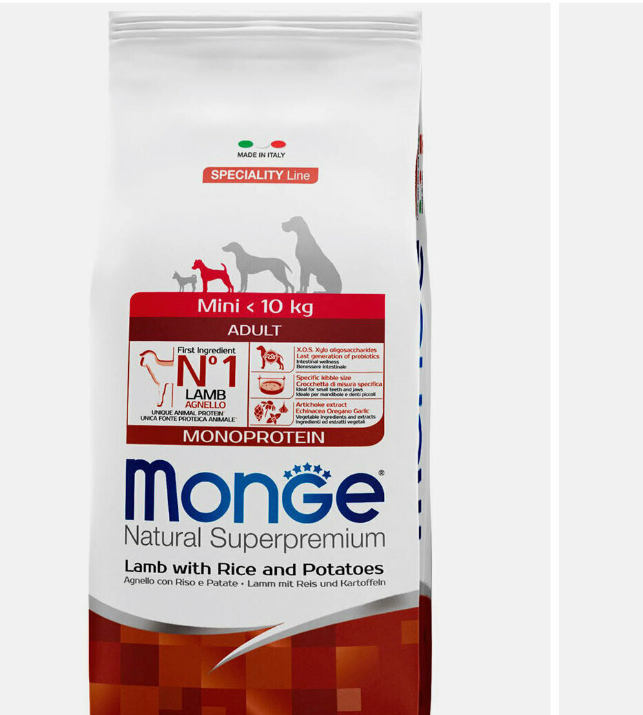 MONGE SPECIALITY DOG MINI ADULT LAMB для взрослых собак маленьких пород с ягненком, рисом и картофелем (7,5 кг)