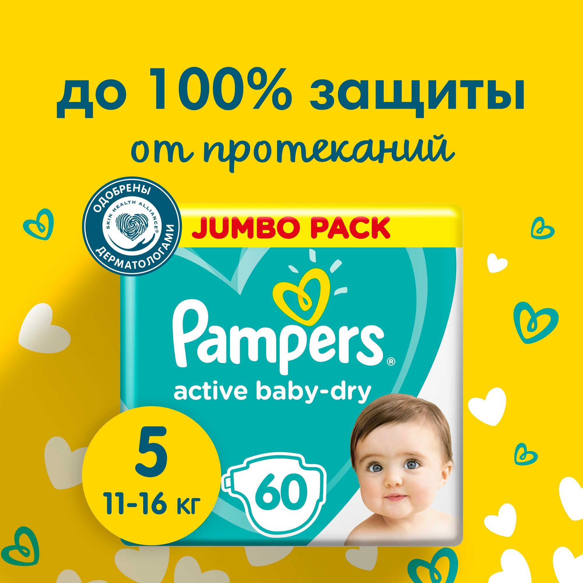 Pampers Подгузники Active Baby-Dry 11-16 кг, 5 размер, 60 шт