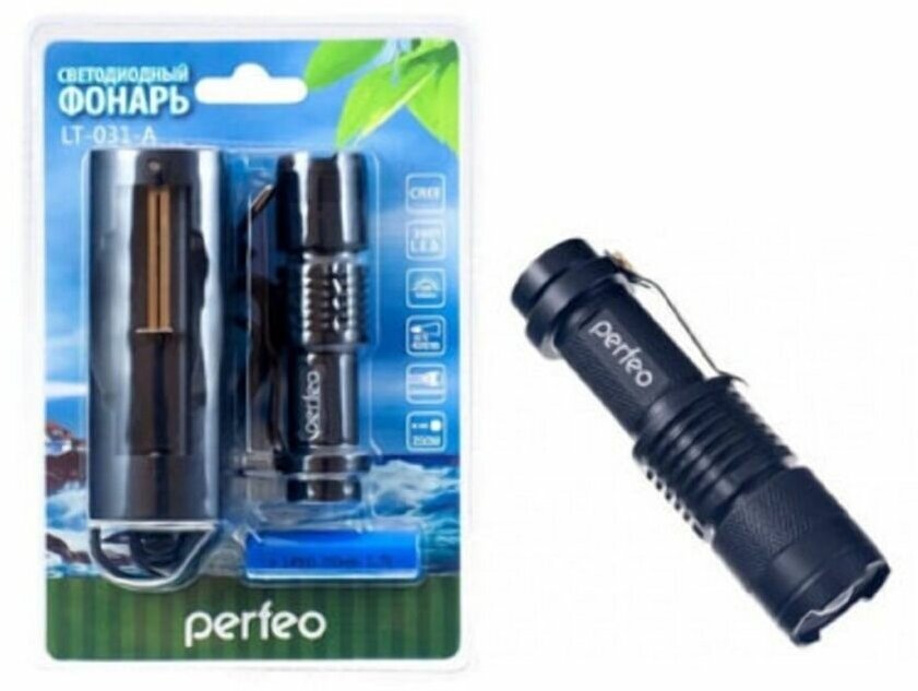 Лучшие цены. Фонарь модели LT-031-A от торговой марки Perfeo, зарекомендовавшей себя в производстве светотехники используется в качестве практичного карманного фонаря, имеющего компактные размеры и яркий источник. Фонарь сделан из высококачественного алюминия. Устройство питается от встроенного аккумулятора, либо от батарейки типа AA. Рассмотрим основные характеристики фонаря: 3 режима освещения со 100% и 50% мощностью, а также сигнальный; возможность фокусировки луча; высокая мощность светового излучения 200 Лм. Магазины в вашем городе.