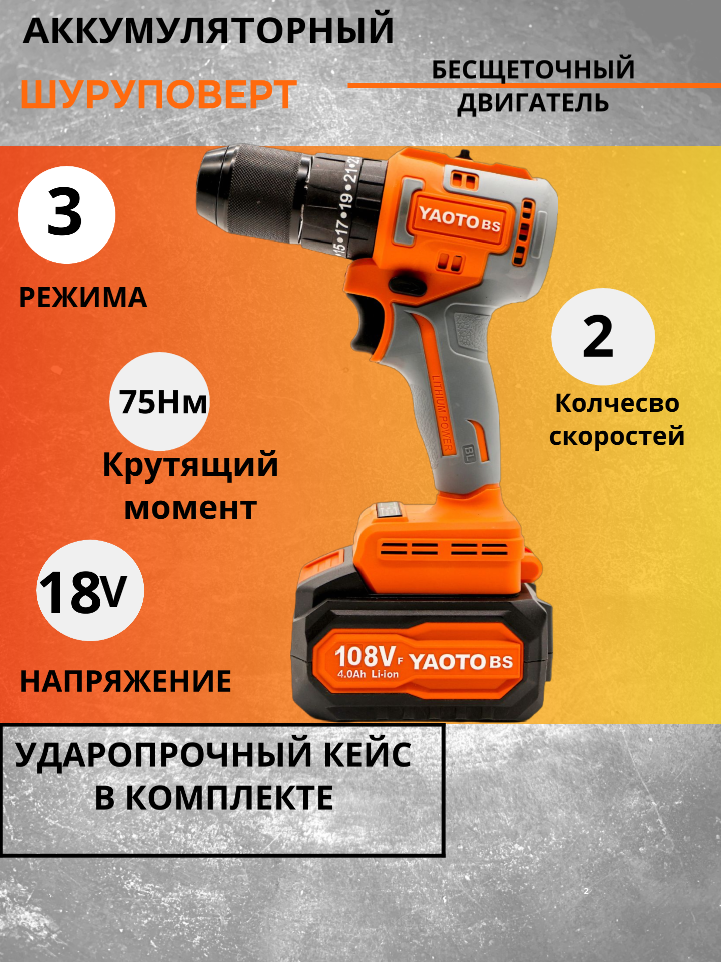 Дрели и шуруповерты Шуруповерт бесщеточный YAOTO BS 108tv