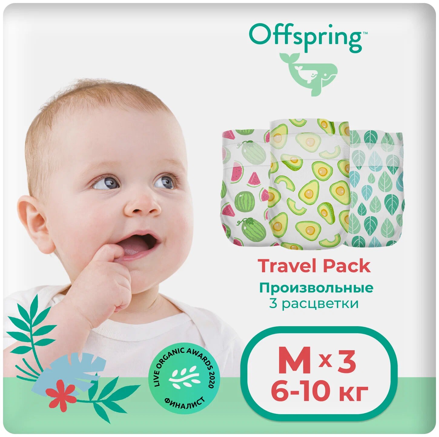 Подгузники "Travel pack" размер M, 3 расцветки Offspring 3 шт