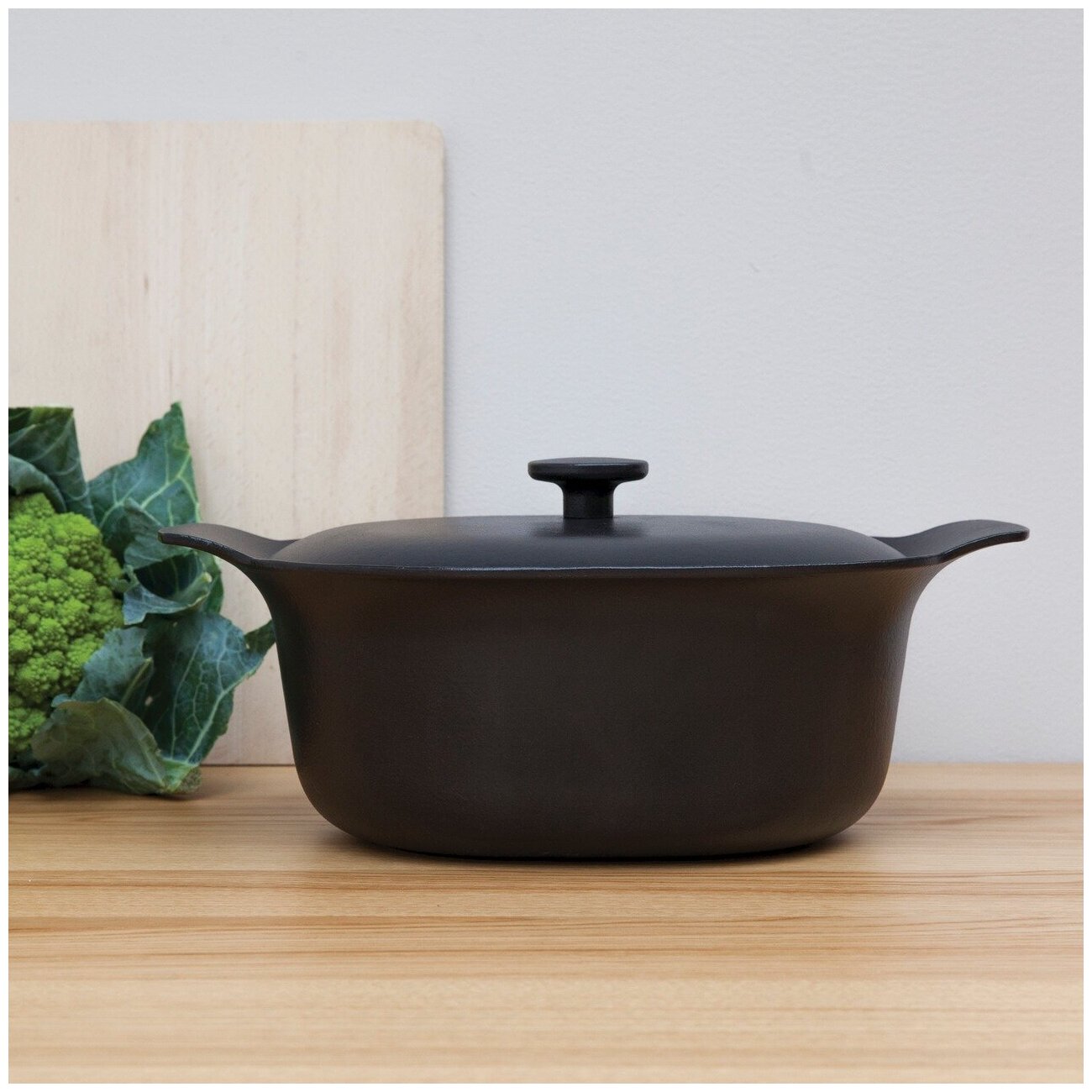 Кастрюля Кастрюля чугунная овальная с крышкой 22*28см 5,2л (черная) Ron