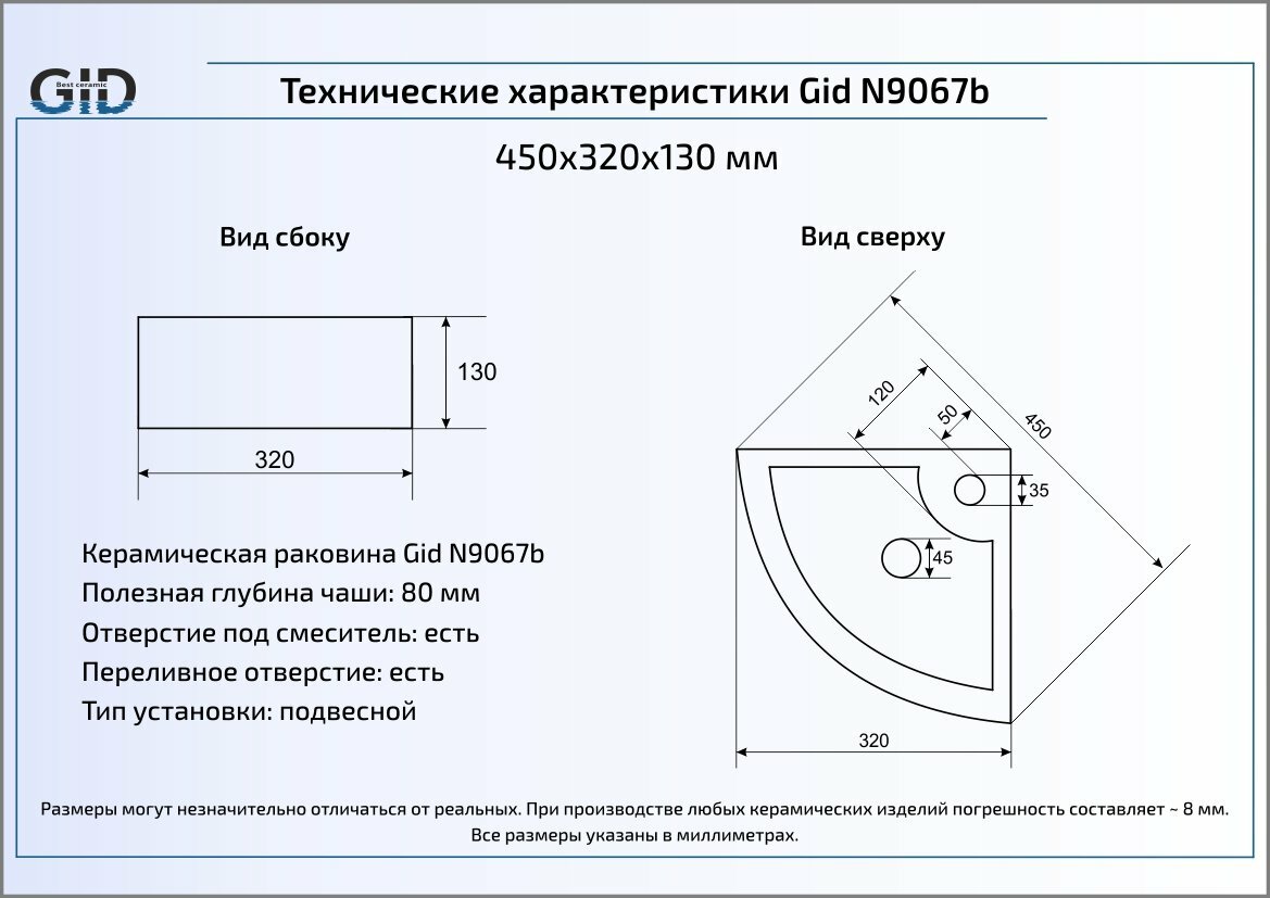 Раковина подвесная (45х33) Gid N9067b 6 762 ₽ Подробнее