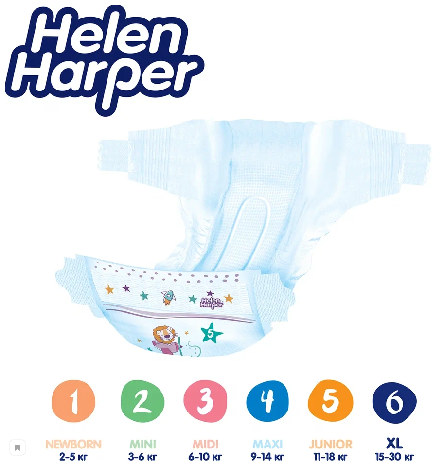 Лучшие цены. Любая мама хочет, чтобы малышу было удобно, и каждый его день, полный открытий, приносил радость. Подгузники Helen Harper Baby обеспечивают до 12 часов сухости: комфортно малышам, удобно мамам. Очень мягкие внутри и снаружи, они изготовлены с учетом новейших разработок и не уступают по качеству лидерам рынка. 3 впитывающих слоя отлично распределяют и удерживают жидкость внутри, исключая протекания. Благодаря эластичным боковинкам подгузник отлично прилегает, не стесняя движений малыша. Магазины в вашем городе.