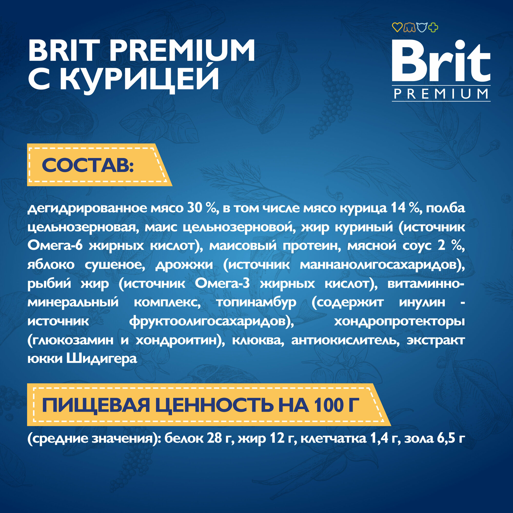 Сухой корм для взрослых собак Brit Premium, курица 1 уп. х 1 шт. х 3 кг (для средних пород)
