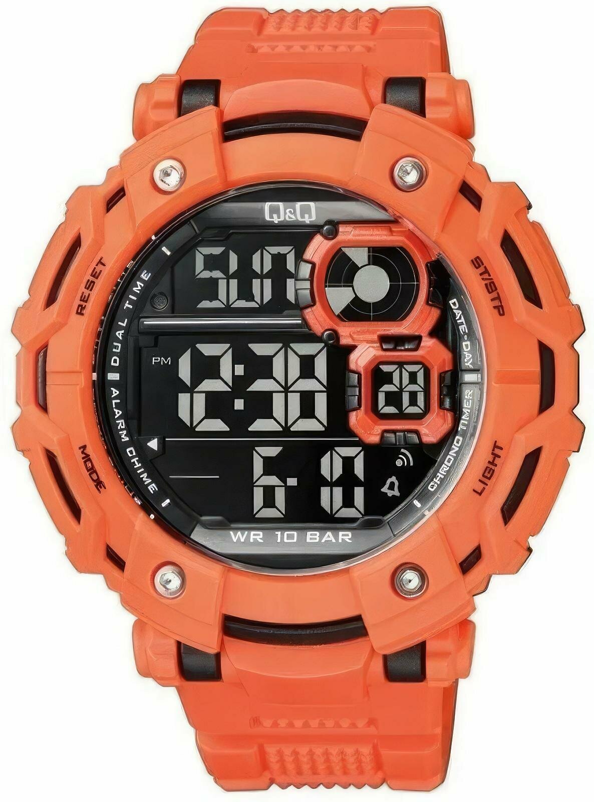 Лучшие цены. Мужские японские наручные часы Q&Q M150-004 [M150 J004Y]. Кварцевый механизм в высокой точностью +/-20 сек в месяц. Прочное пластиковое стекло обеспечит защиту часов от повреждений, разбить такое стекло очень сложно. Высокая водонепроницаемость 100WR (10 Бар) идеально подходит для плавания с маской и трубкой. Корпус часов сделан из высококачественного пластика. Ремешок из натурального полимерного материала с классической застежкой - это стильно, удобно и практично. Источник питания - батарейка. Магазины в вашем городе.