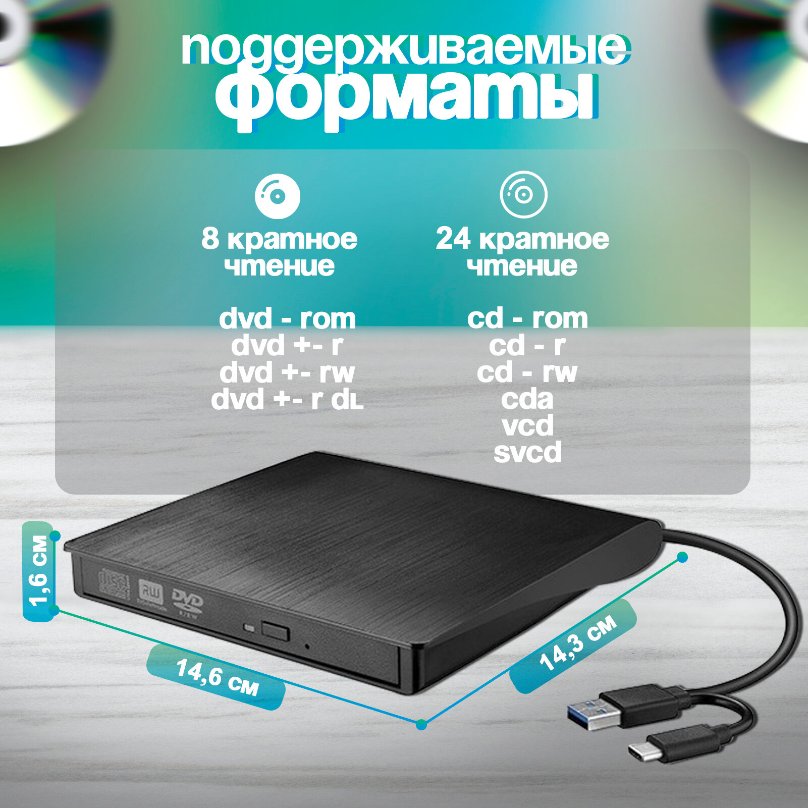 Оптические приводы Внешний дисковод для ноутбука (оптический привод) CD / DVD - USB 3.0 , Type-C / для компьютера