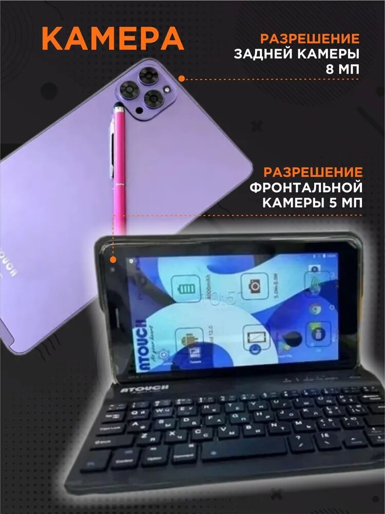Лучшие цены. Планшет ATOUCH X19 Mini – это надежный и функциональный девайс для работы, развлечений и отдыха. Он обладает диагональю экрана 7 дюймов, что обеспечивает комфортное использование, а также оснащен четырехъядерным процессором MediaTek MT6580 и оперативной памятью объемом 8 ГБ. Объем встроенной памяти составляет 256 ГБ, что позволяет хранить большое количество информации и приложений. Яркий IPS-экран с разрешением 1280 x 800 пикселей обеспечивает четкое изображение и яркие цвета. Магазины в вашем городе.