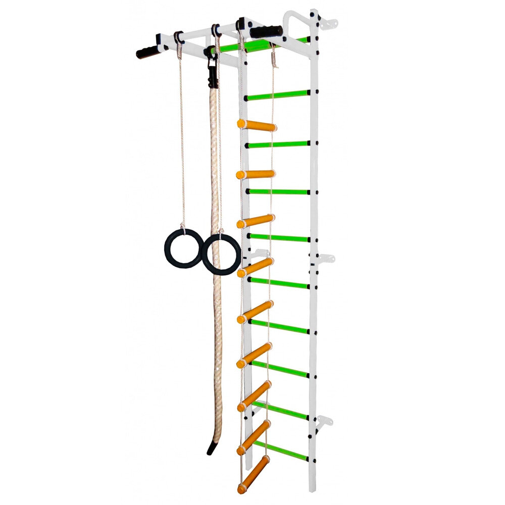 Шведская стенка Формула здоровья Карапуз (Белый-Салатовый) - пристенный детский спортивный комплекс для дома