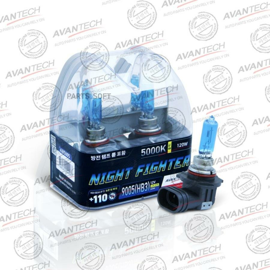 Лампа 9005 (HB3) 12V 65W (120W) 5000K пластик. NIGHT FIGHTER, комплект 2 шт. AVANTECH AB5005