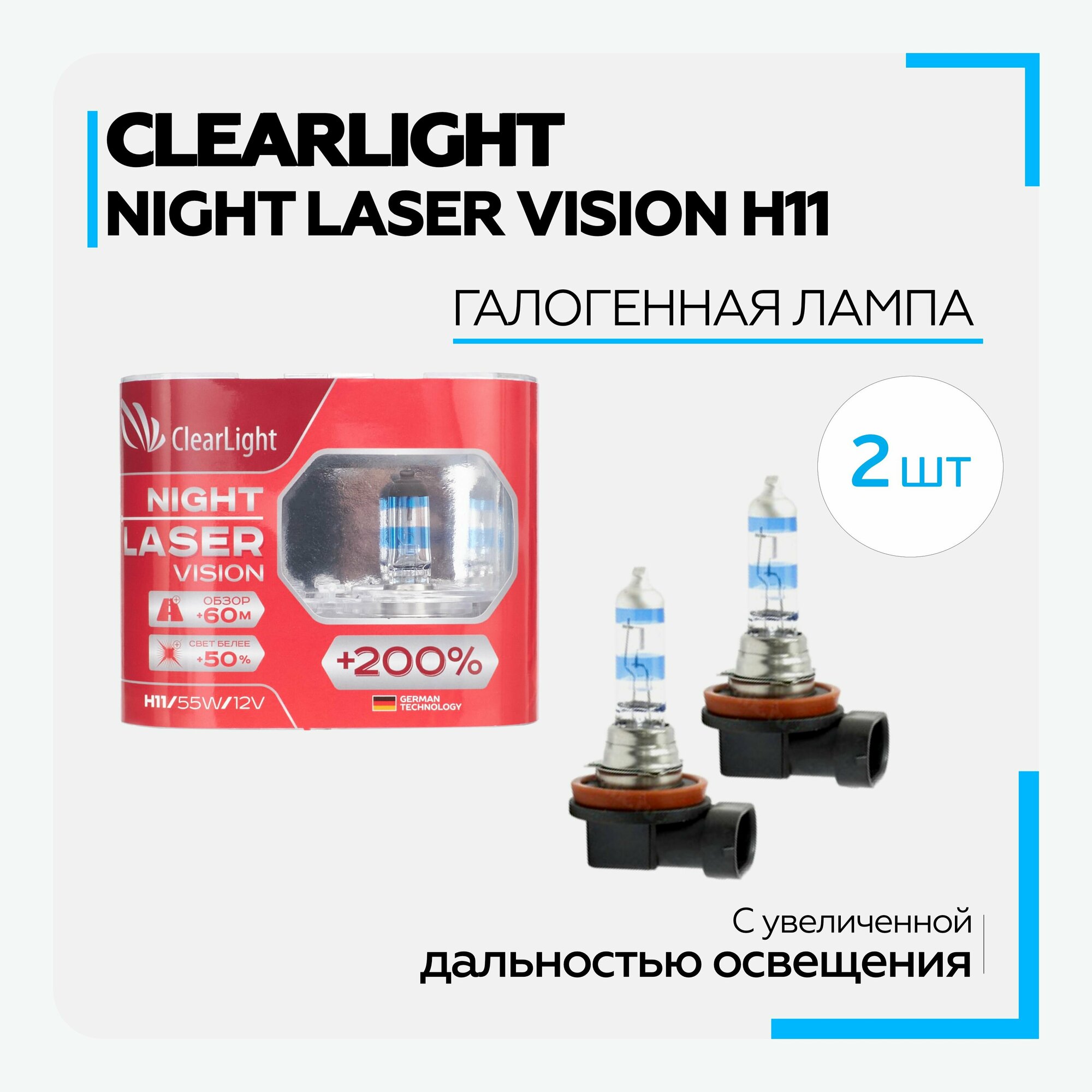 Clearlight Night Laser Vision (mlh11nlv200-2) Автомобильные лампы 2 шт(H11, 55W, 12V) .