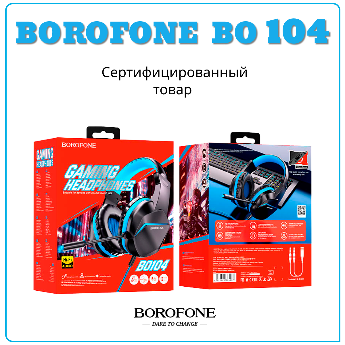 Наушники Компьютерная гарнитура BOROFONE BO104 Phantom синий, Наушники игровые для компьютера, ноутбука