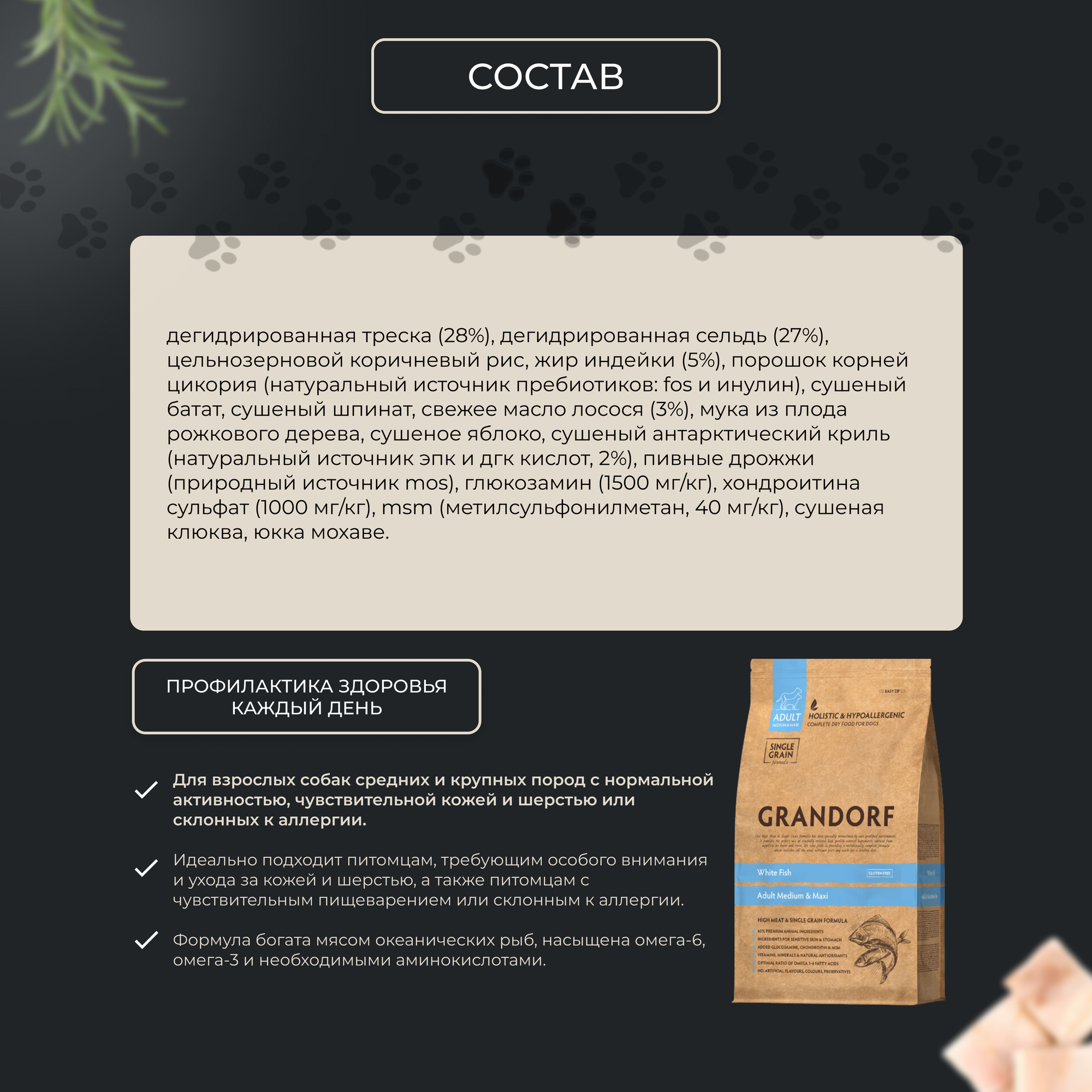 GRANDORF DOG 3кг WhiteFish MEDIUM&MAXI BREEDS (белая рыба для собак средних и крупных пород)