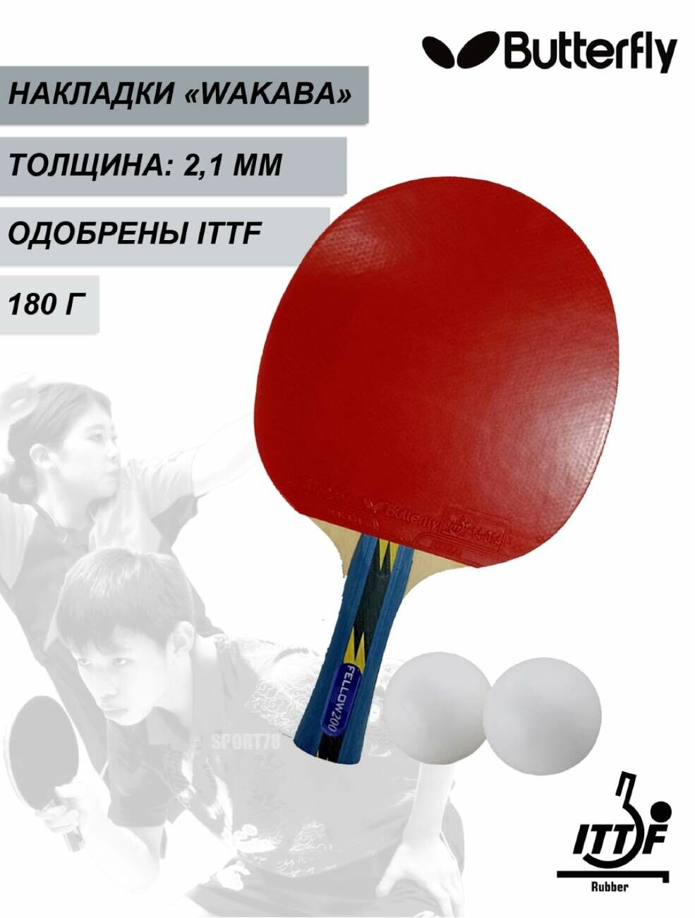 Ракетки для настольного тенниса Ракетка для настольного тенниса BUTTERFLY Fellow 200 с чехлом и мячами