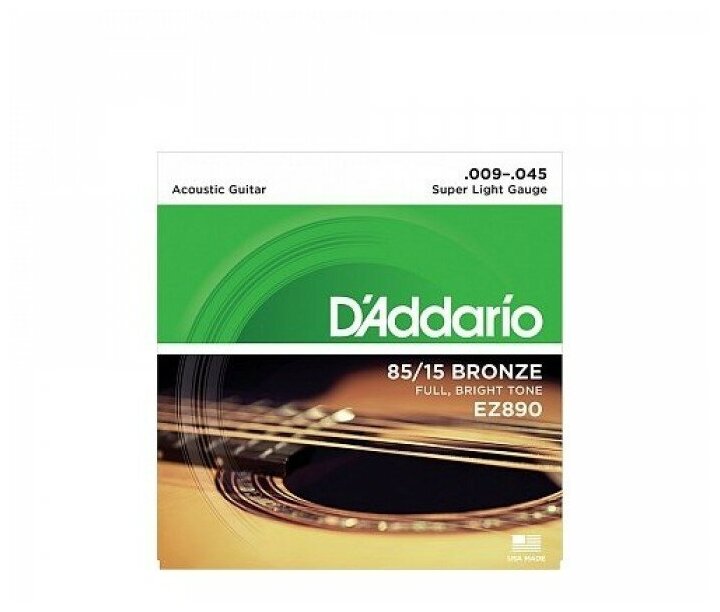 Лучшие цены. EZ890 AMERICAN BRONZE 85/15 Струны для акустической гитары Super Light 9-45 D`Addario EZ890 019954126049 D'Addario EZ890 85/15 Bronze Acoustic Guitar Strings, Super Light, 9-45 Самые тонкие струны D'Addario из сплава бронзы 85/15 для акустических гитар, EZ890 идеальны для начинающих и гитаристов, предпочитающих мягкое звучание и простоту исполнения бендов. Сплав бронзы 85/15 сочетает в себе яркость звучания сплава бронзы 80/20 с долговечностью струн из фосфорной бронзы. Магазины в вашем городе.