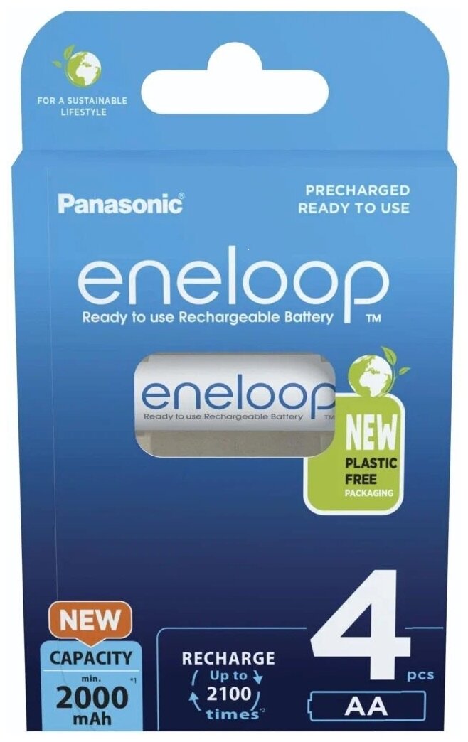 Аккумулятор Panasonic AA Eneloop 2000mAh BL4 BK-3MCDE/4BE, 4шт.