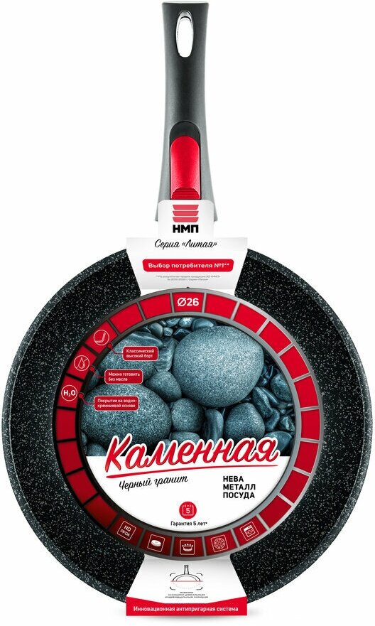 Сковорода 26 "Каменная" Чёрный гранит с/р НМП .