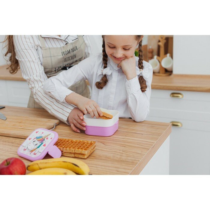 Контейнер для обеда Единорог, 0,4+0,4 л, цвет розовый