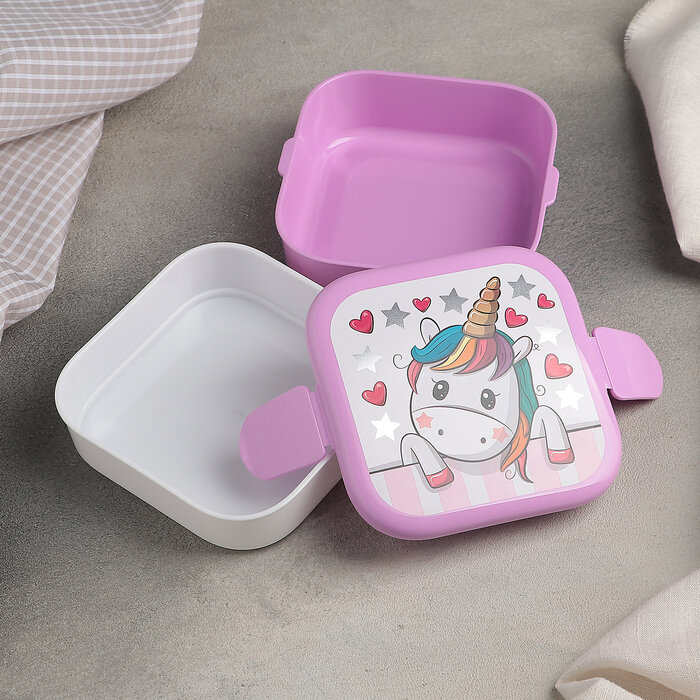 Контейнер для обеда Единорог, 0,4+0,4 л, цвет розовый IDEA 4738111 .