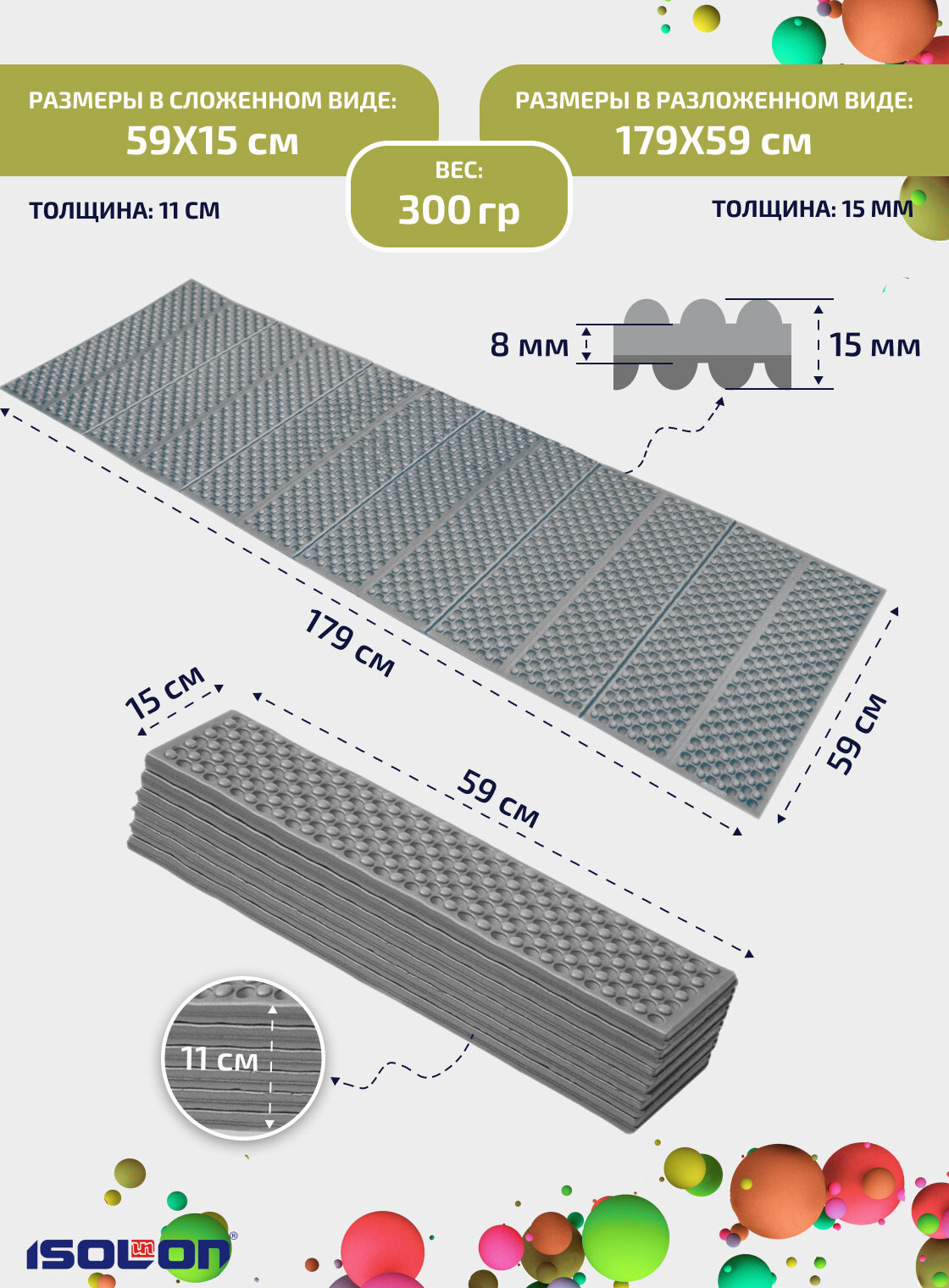 Коврик плотный складной туристический ISOLON Tourist Flex 179 х 59 х 1.5 см хаки, серый 840 ₽ Подробнее