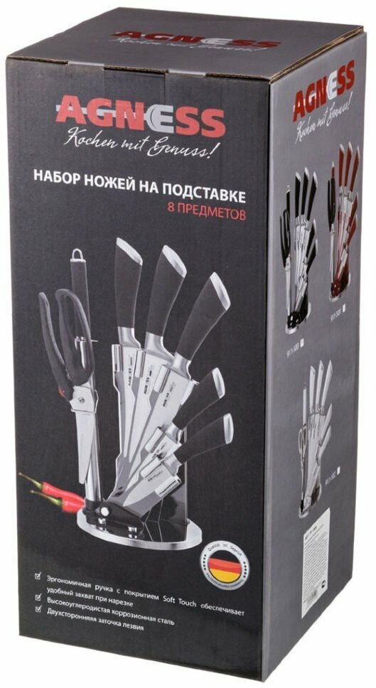 Набор ножей Agness "Midnight", из нержавеющей стали, на пластиковой вращающейся подставке, 8 предметов 2 575 ₽ Подробнее
