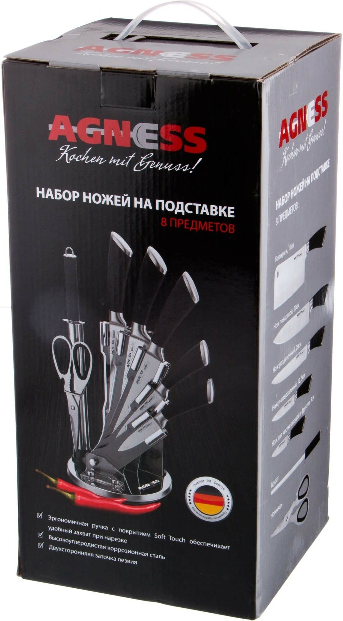 Набор ножей Agness с ножницами и мусатом на вращающейся платиковой подставке, 8 предметов