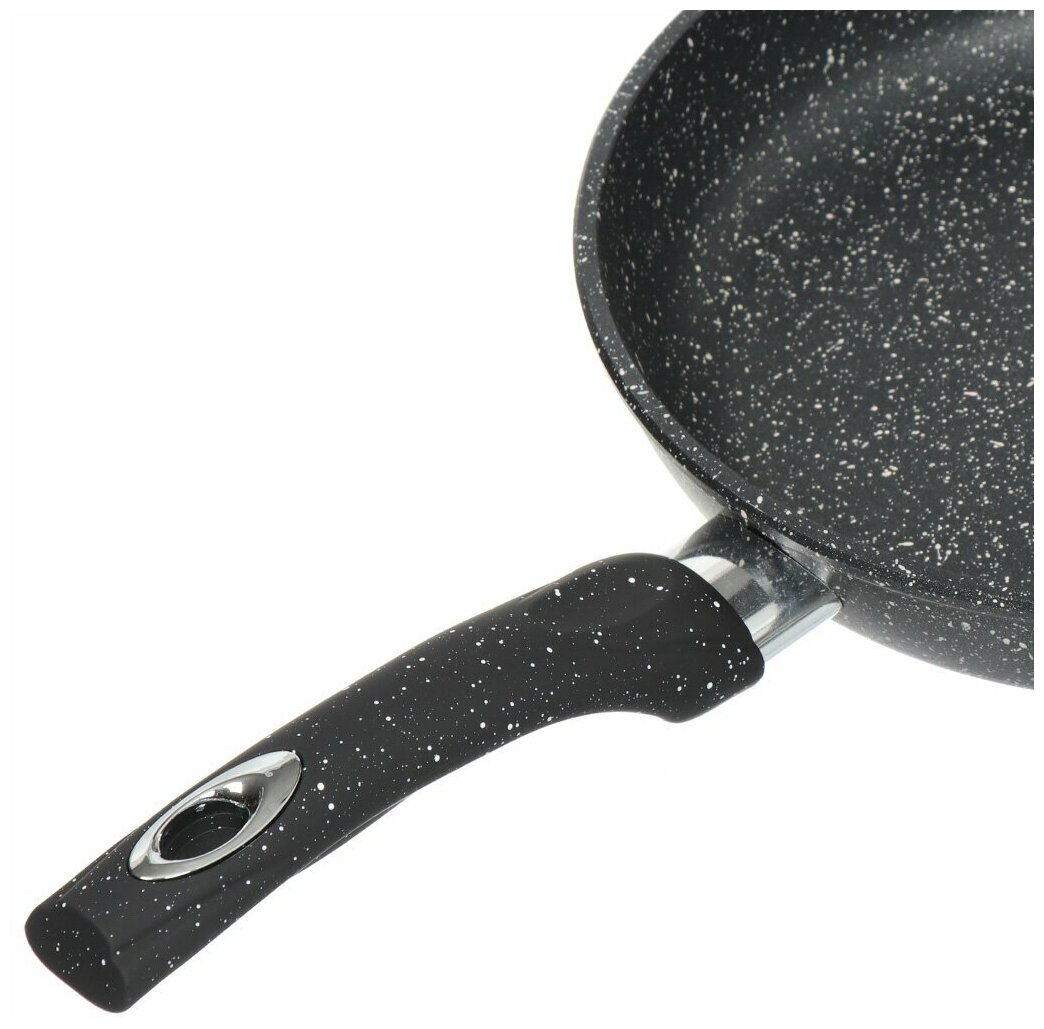 Лучшие цены. «Гранит». Коллекция посуды с улучшенным трехслойным антипригарным покрытием. Дополнительный слой с мраморным эффектом увеличивает износостойкость и создаёт оригинальный оттенок чёрного мрамора. Украсьте вашу кухню как необычными оттенками, так и кулинарными шедеврами. Литая алюминиевая сковорода с антипригарным покрытием подходит для газовых, электрических и стеклокерамических плит. Сковороды со съёмными ручками можно ставить в духовой шкаф. Магазины в вашем городе.