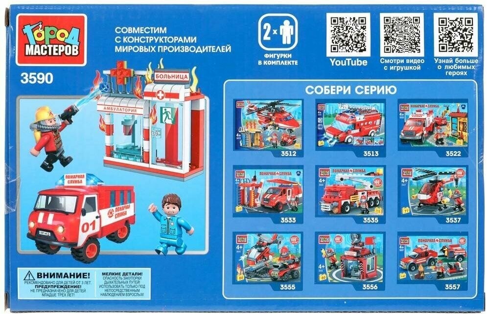 Лучшие цены. Конструктор «Уаз-452. Пожар в больнице» ТМ «Город мастеров» понравится маленьким спасателям. Особенности и комплектация: - 121 деталь - 2 фигурки - совместим с моделями конструкторов мировых брендов - все детали легко и плотно соединяются между собой С помощью этого занимательного конструктора ваш ребёнок может собрать реалистичную модель пожарной машины, декорации больницы и помочь храбрым сотрудникам пожарной службы остановить возгорание. Магазины в вашем городе.
