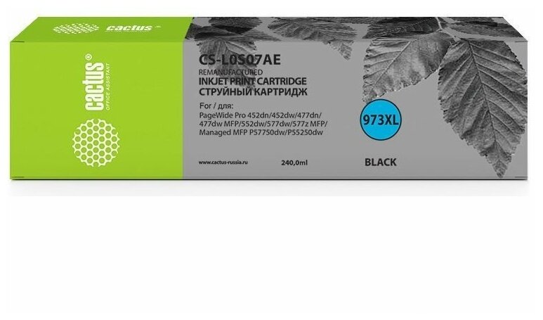 Струйный картридж Cactus CS-L0S07AE 973XL черный (240мл) для HP PageWide Pro 452dw/Pro 477dw