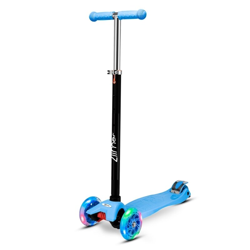 Самокаты Самокат Zilmer "ZR-90" (3-х колесный, 12/8 cм PU, свет, голубой) (ZIL1812-200)