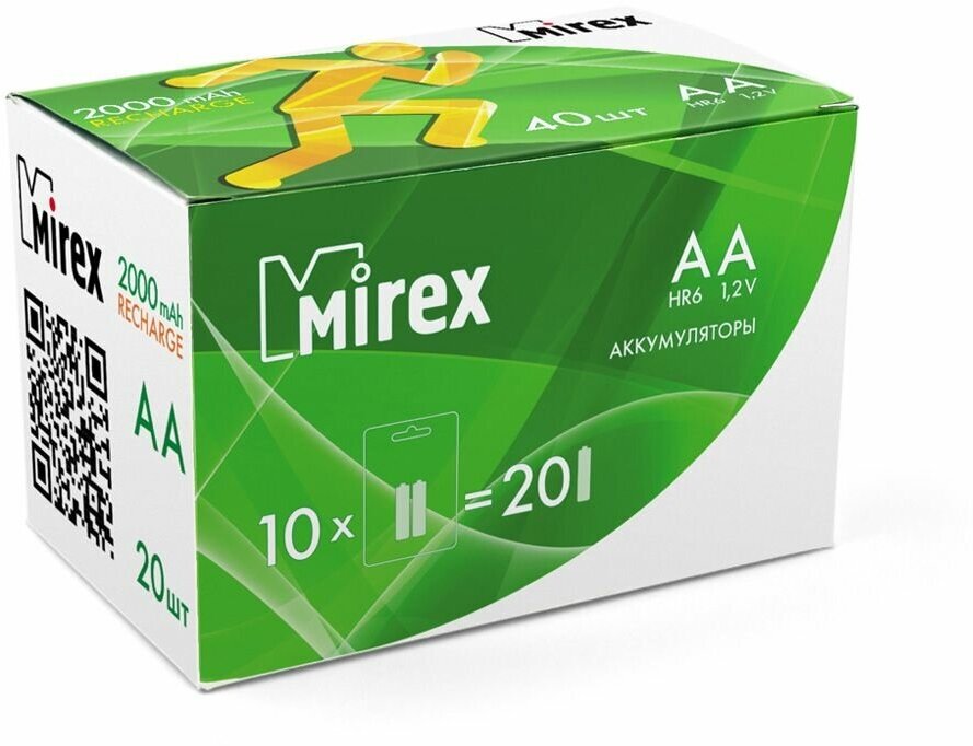 Аккумулятор Mirex, Ni-MH HR6 / AA 2000mAh 1,2V 2 шт ecopack 23702-HR6-20-E2