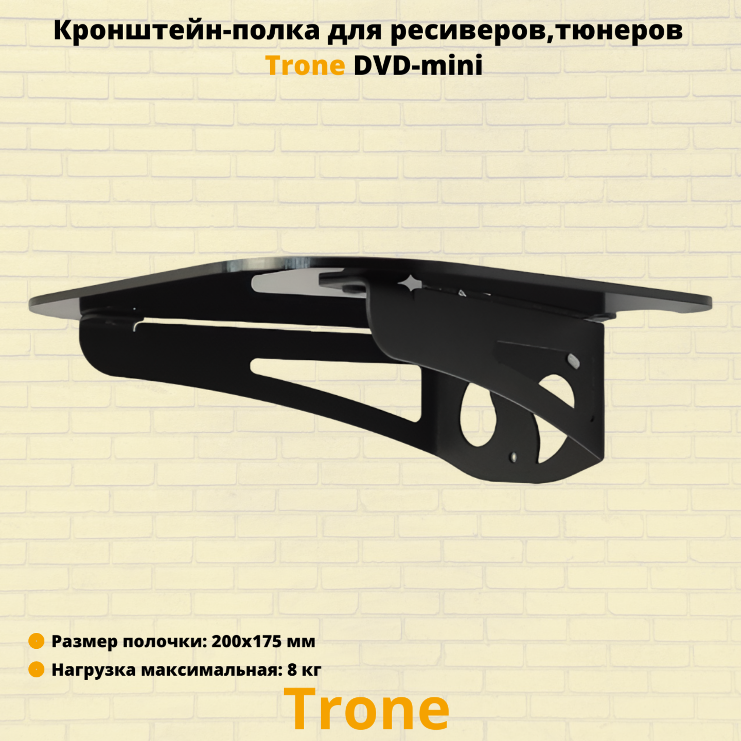 Кронштейн для телевизионных приставок Trone DVD-mini настенная полка до 8 кг 200*175мм - чёрный