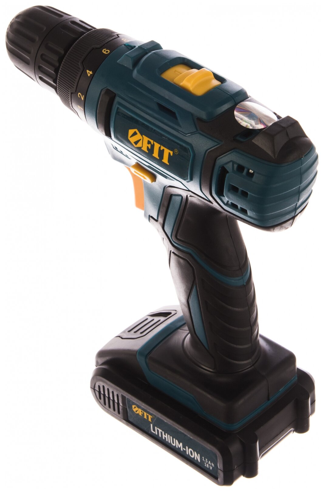 Дрель/шуруповерт Дрель-Шуруповерт акк. 18,0 В; 0-400/1450 об/мин; 29,0 Нм; 2 (Li-Ion) 1,3 Ач; 1,5 ч.; рез. накл.; кейс FIT