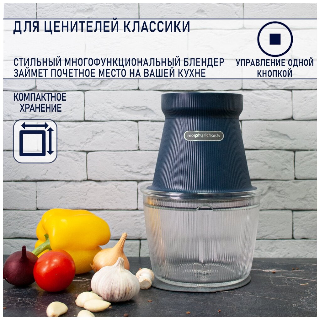 Лучшие цены. Компактный блендер измельчитель кухонный с повышенной функциональностью от Morphy Richards без преувеличений обладает многофункциональностью и комплектацией кухонного комбайна. В повседневной жизни современного человека он просто незаменим, ведь именно пища наполняет нас энергией. Создавайте заготовки для приготовления блюд быстро и легко - с мини блендером производства британского бренда бытовой техники №1. Магазины в вашем городе.