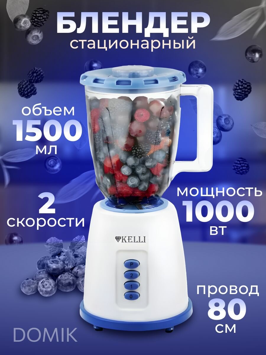Стационарный домашний блендер Kelli, 1000Вт, 1.5л объем чаши, 2 скорости, импульсный режим, ложечка