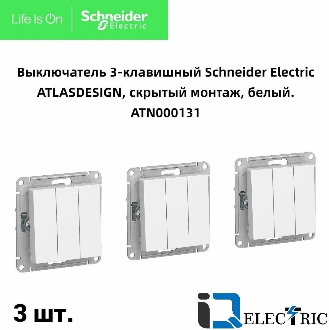 Выключатели Выключатель 3-клавишный ATLASDESIGN, скрытый монтаж, белый | код. ATN000131 | Schneider Electric (3шт.в упак.)