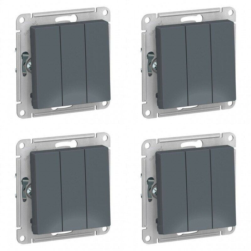 Выключатели Выключатель трехклавишный ATLASDESIGN схема 1+1+1 10АХ механизм грифель | код ATN000731 | Schneider Electric (4шт.в упак.)