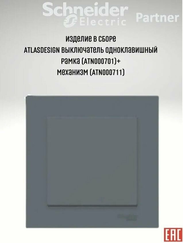 Лучшие цены. Механизм Schneider Electric AtlasDesign выключателя 1-клавишного подходит для сетей 250 В, на ток 10 А. Пластик с ионами серебра обеспечивает антибактериальный эффект. Лицевые детали из качественного ABS-пластика, устойчивого к царапинам и УФ-излучению. Усиленные прямые монтажные лапки для лучшей фиксации механизма в монтажной коробке. Серия AtlasDesign представлена в десяти цветах, которые прекрасно сочетаются между собой и делают классический квадратный дизайн розеток и выключателей более стильным. Магазины в вашем городе.