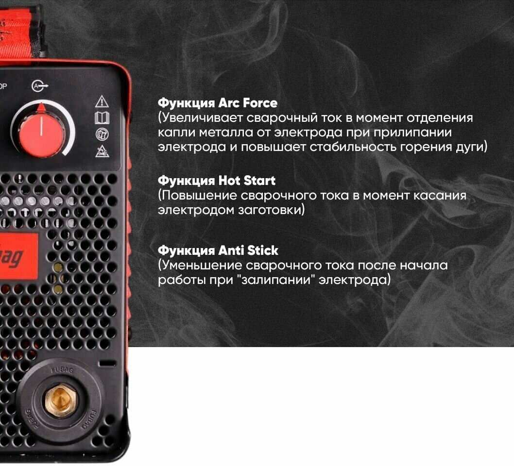 Сварочный аппарат FUBAG IR 180, ММА сварочный ток 10-180 А, Горячий старт, Форсаж дуги, Антизалипание электрода