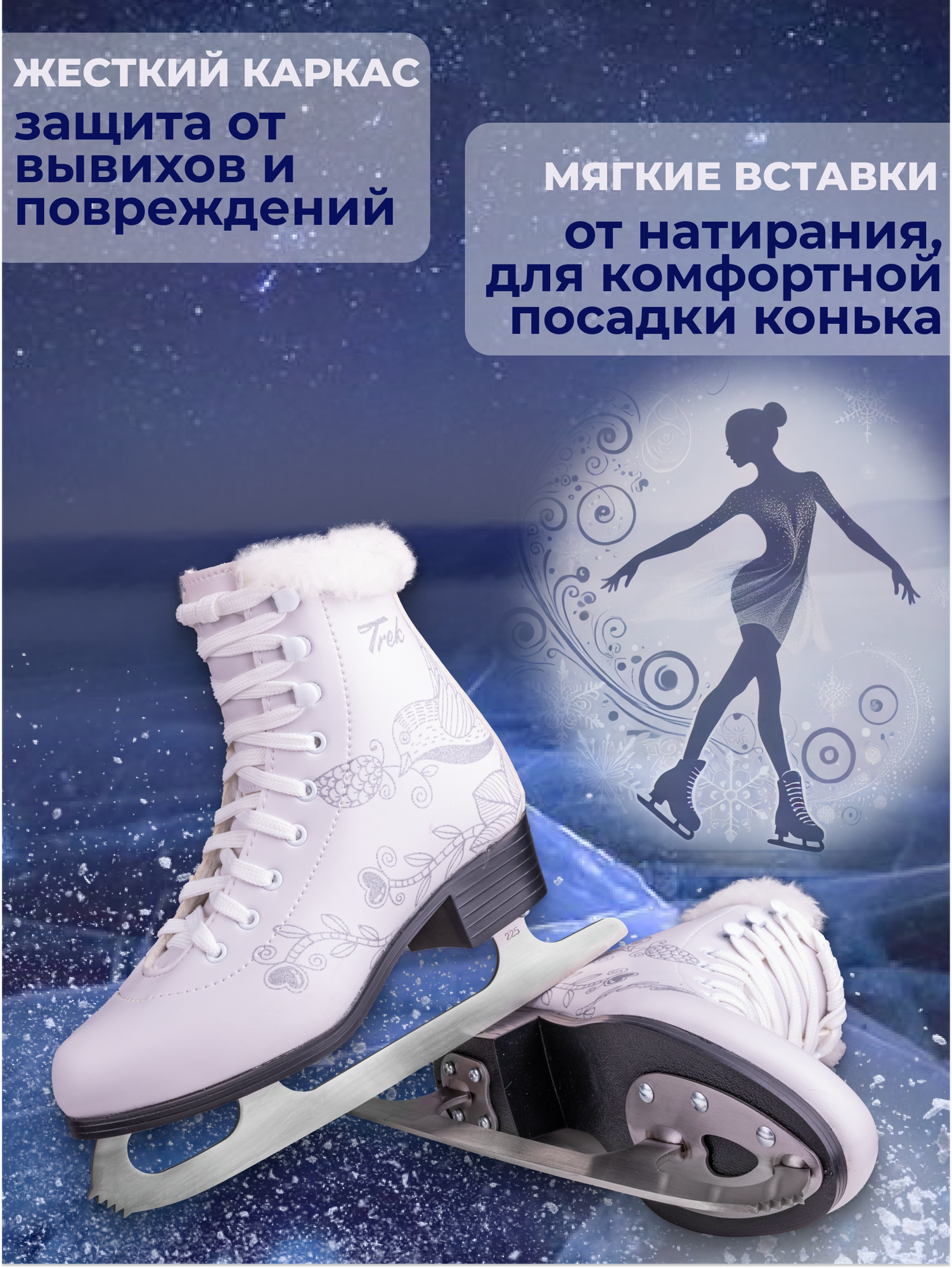 Коньки фигурные TREK Bird3 белый, размер: RU34;EU35;CM21,5