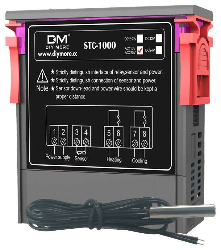 Терморегулятор техметр STC-1000 (-50C~100C, точность 1C, 12V) (1м) (Серый) 912 ₽ Подробнее