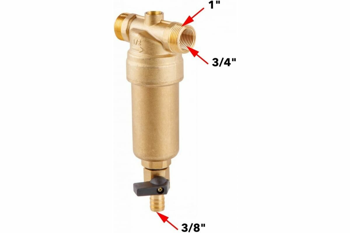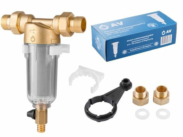 Магистральный фильтр для воды самоочищающийся промывной латунный 3/4", 100 микрон AV Engineering (AVE115704)