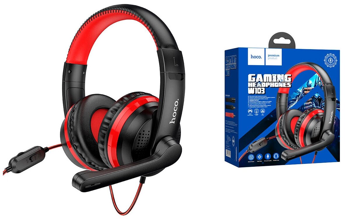 Наушники с микрофоном Hoco Gaming W103 Magic tour Red Black
