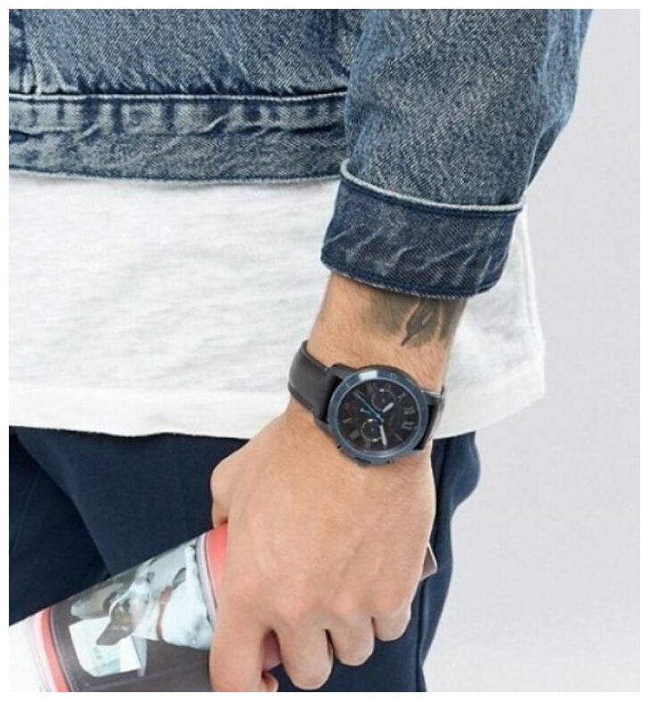 Лучшие цены. Кварцевый механизм с функцией хронографа. 12/24 часовой формат отображения времени. Минеральное стекло. Заводная головка с защитой. Корпус из нержавеющей стали с IP покрытием. Кожаный ремешок. Диаметр корпуса 44 мм, глубина 11 мм. Магазины в вашем городе.