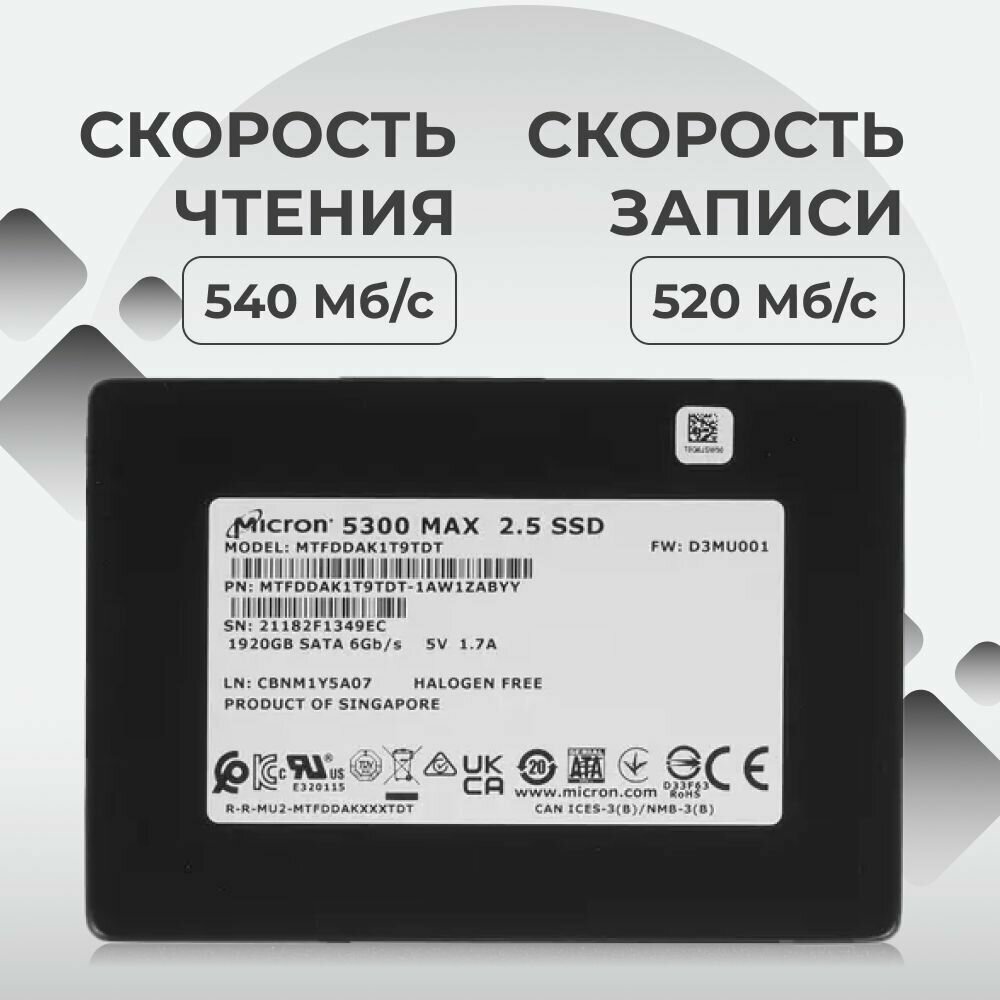SSD диск CRUCIAL Micron () 2.5" 5300 MAX Enterprise 1,92Тб SATA III TLC 3D MTFDDAK1T9TDT-1AW1ZABYY